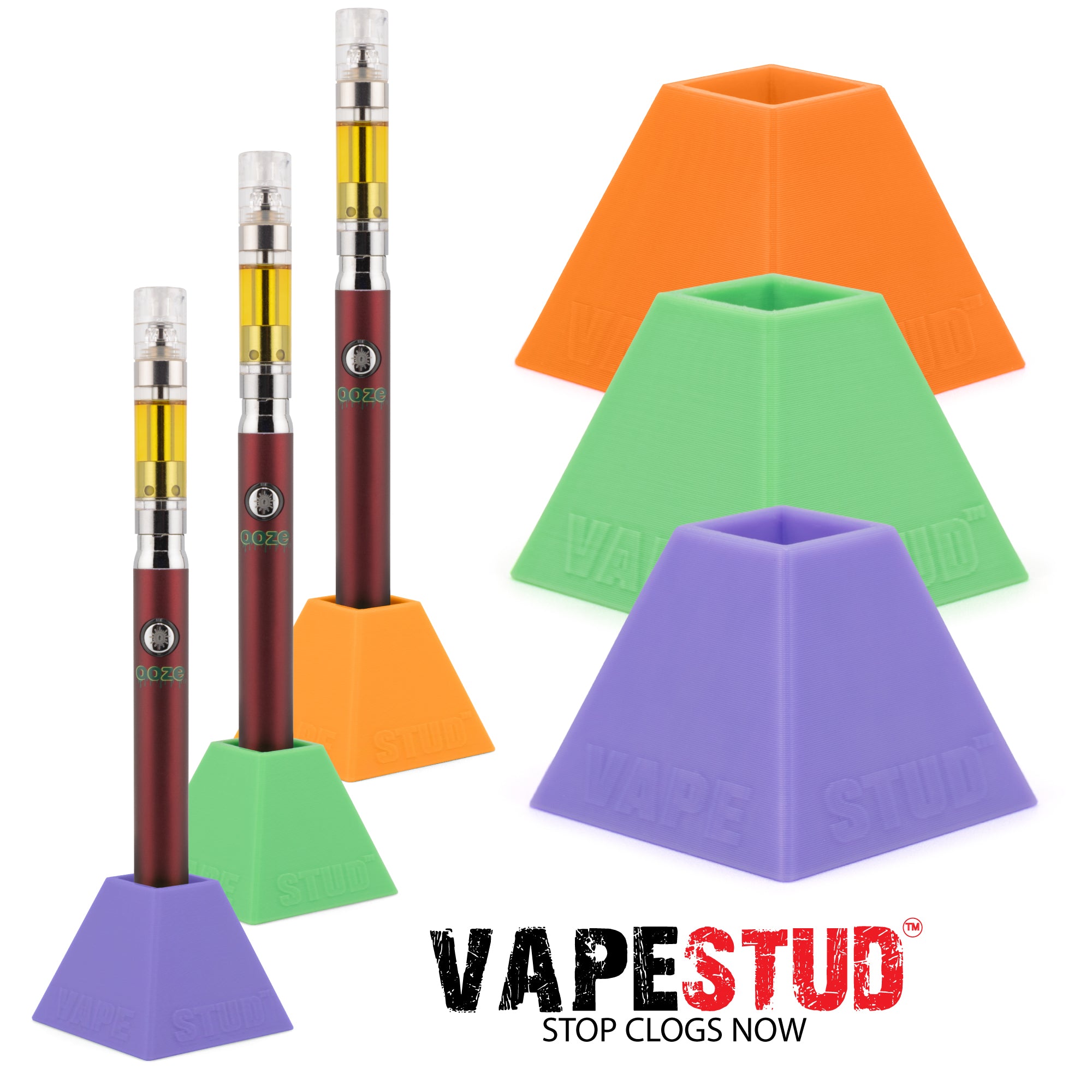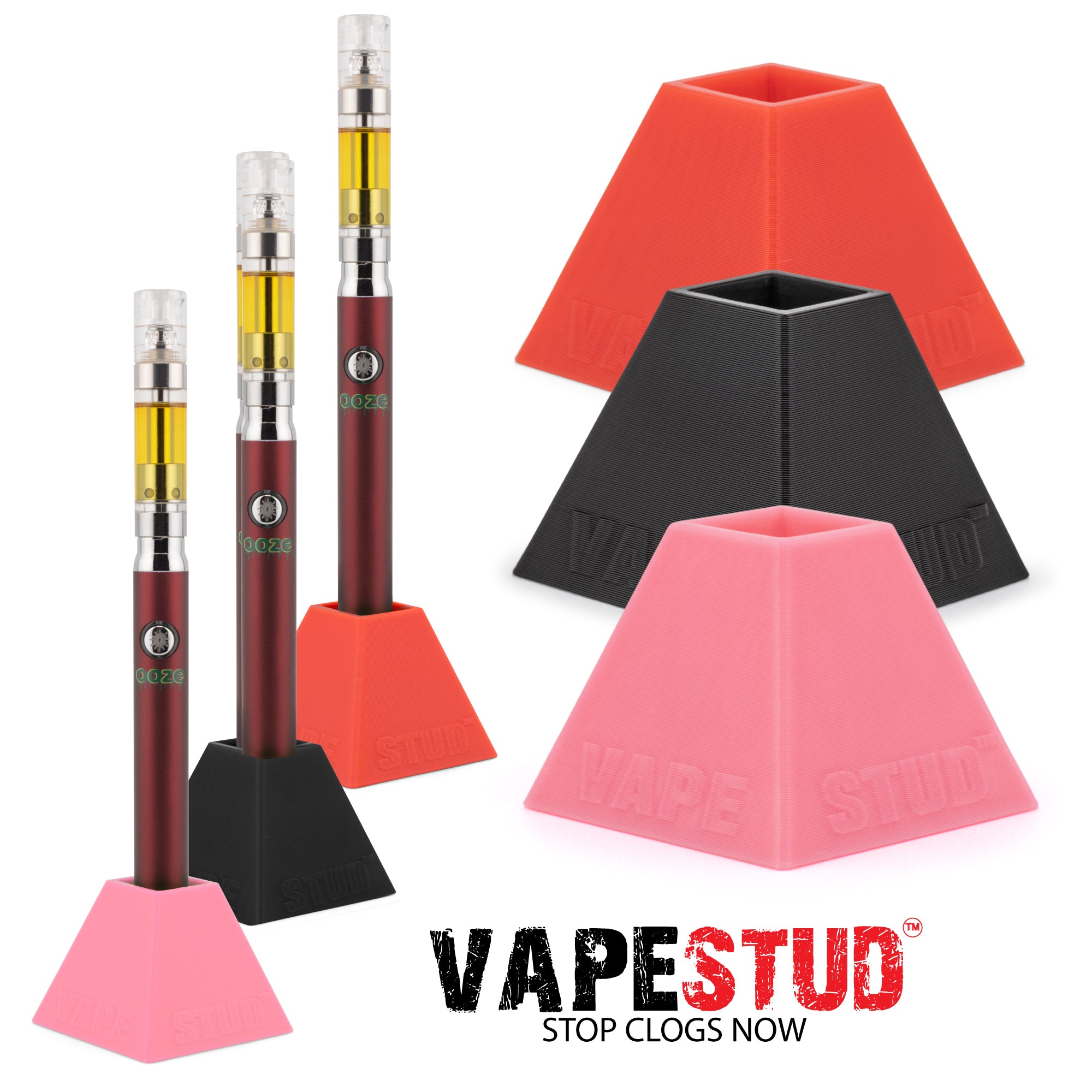 Elevate your vaping experience with Vapestud™ Vape Stands designed for Ooze, Yocan, Cookies, Pulsar, Randy's, Cartisan, and other 510-thread vape batteries.